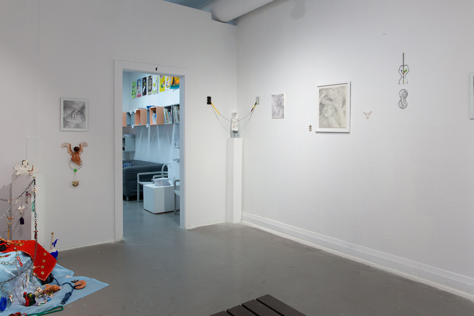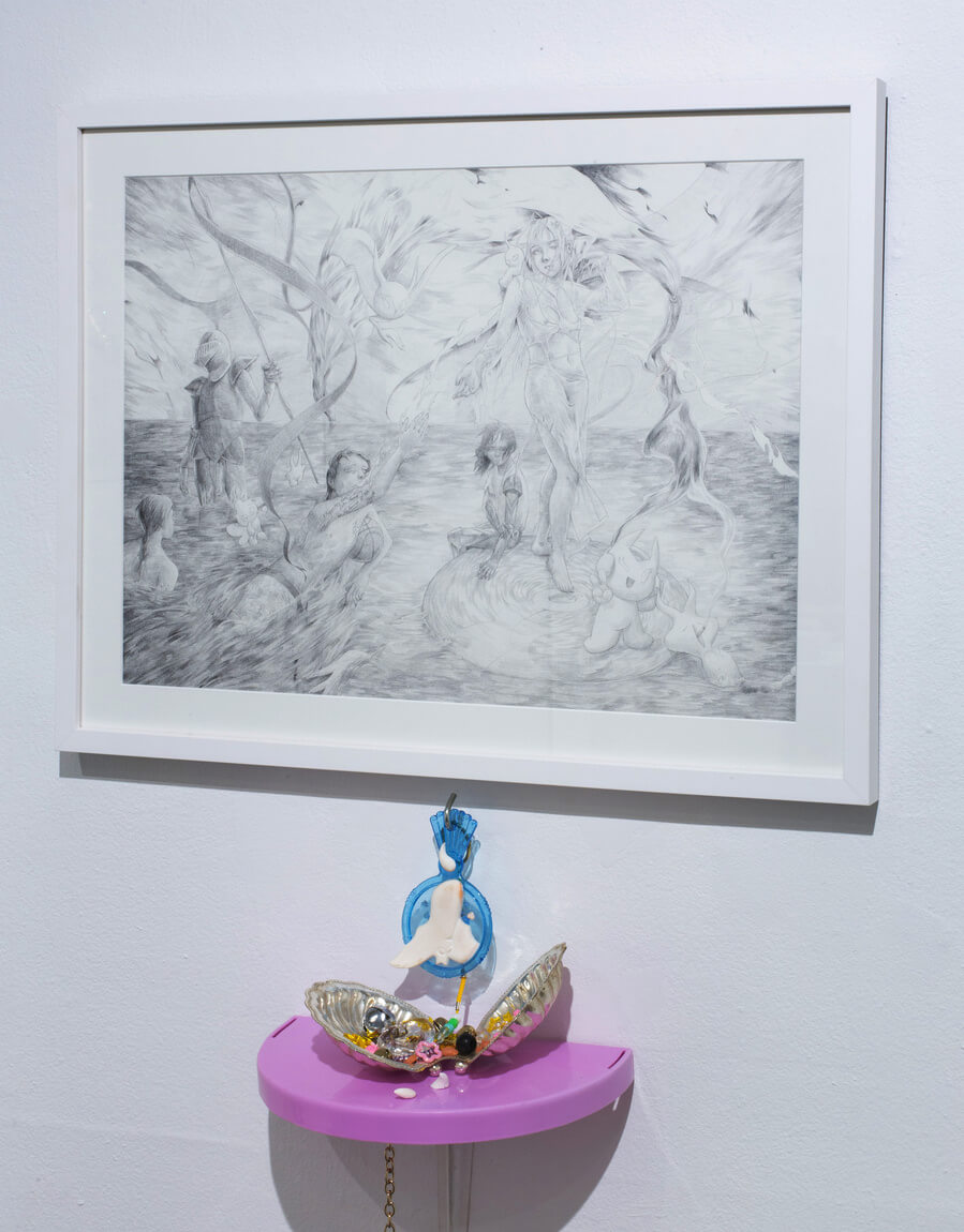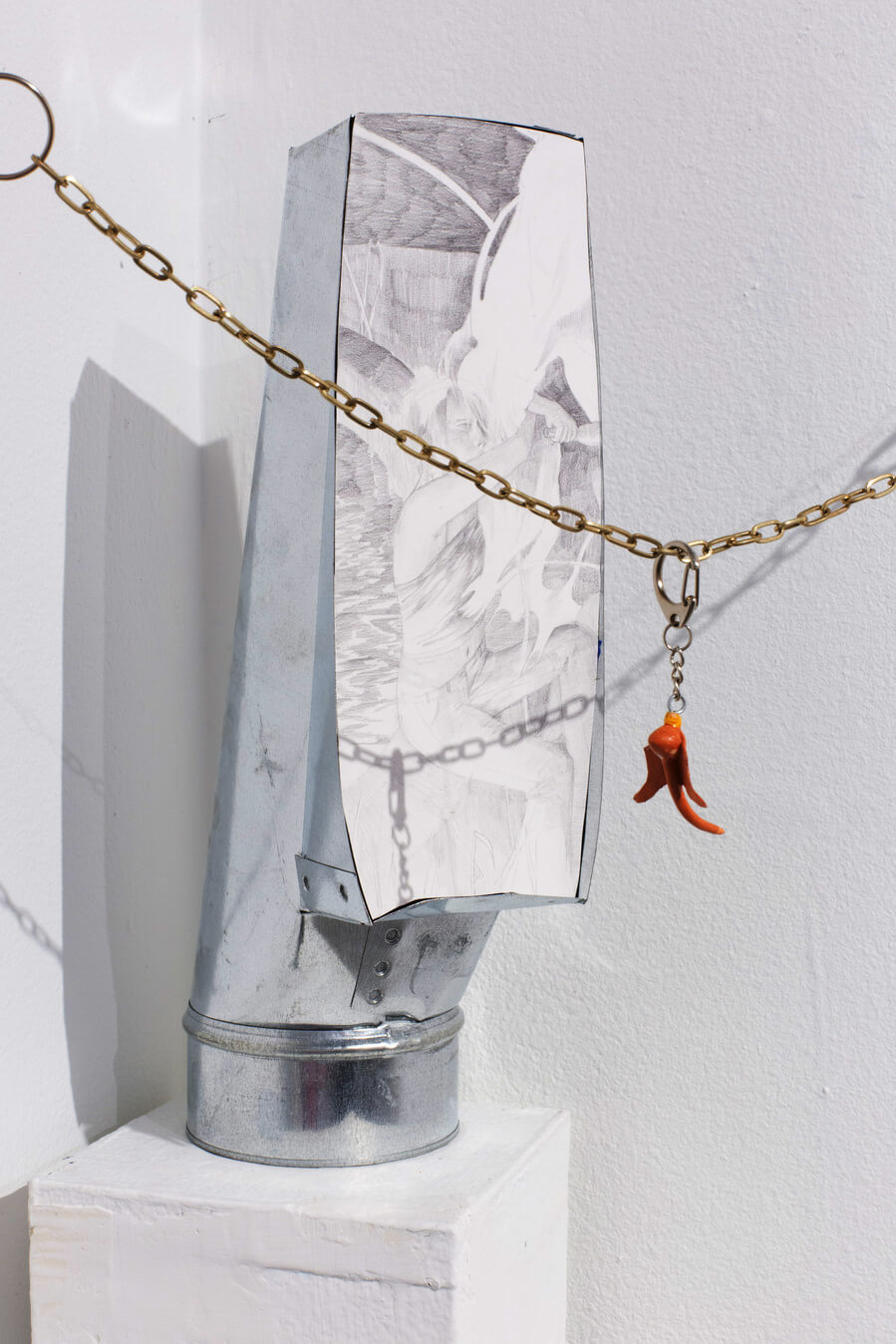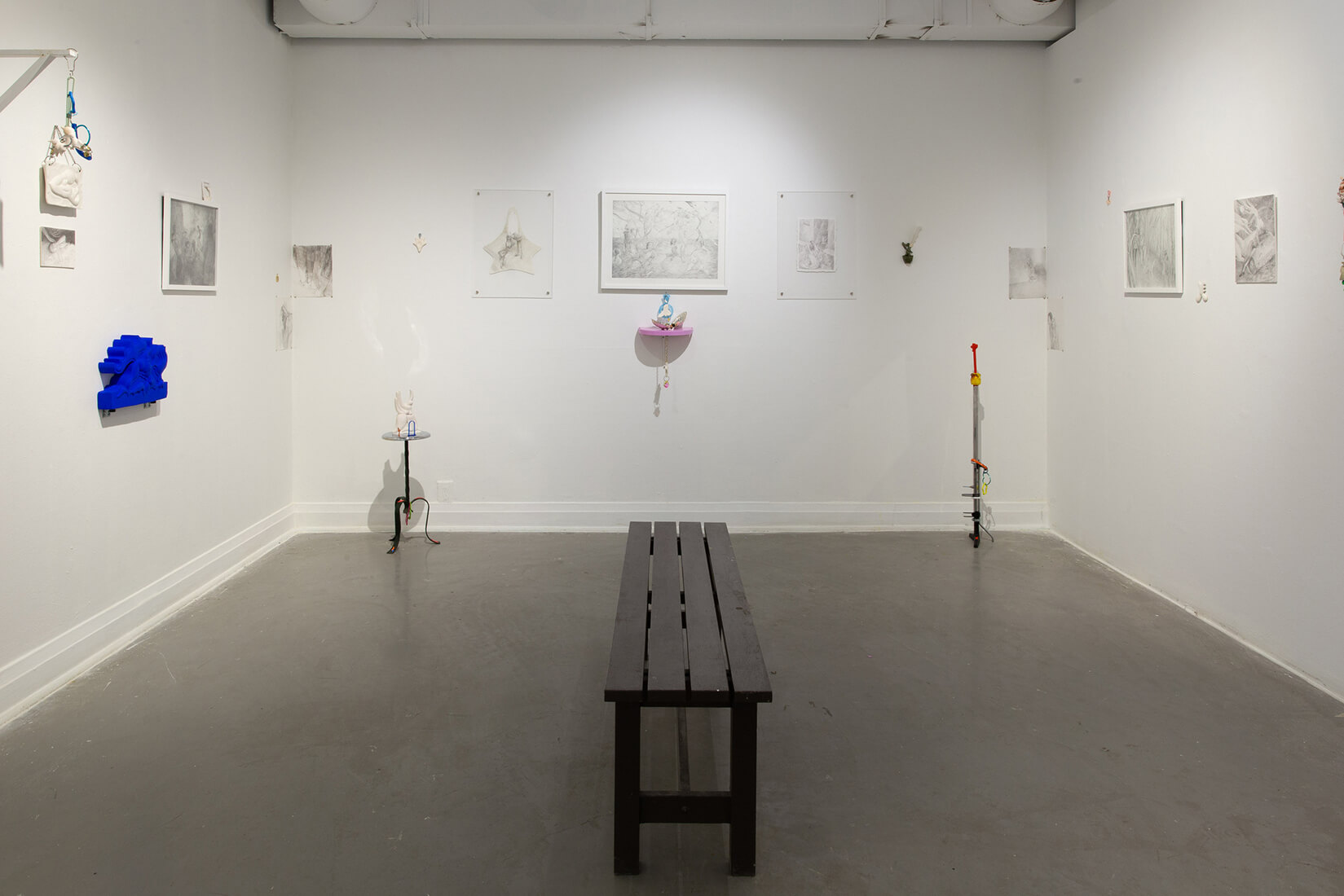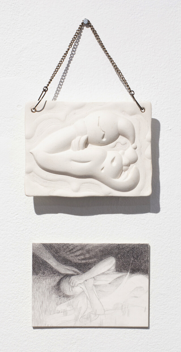 Artist Statement: Dreams and ghosts are held in stasis under a thin veil of amber. Kyle Mowat and Lina Wu employ these dense and materially-oriented processes to populate a world with artifacts re-animated by their own confused histories. Each small detail reveals an underlying strangeness, like facets of a dull gem. Objects become alien, plucked from their original function, material, and location, to serve as vessels exuding new spirits. Drawings and sculptures are corporeal chronicles of the overlapping and peeling away of memory. Creatures and other figurations emerge from semi-fictive tableaux, inviting us to engage with their material intimacy.