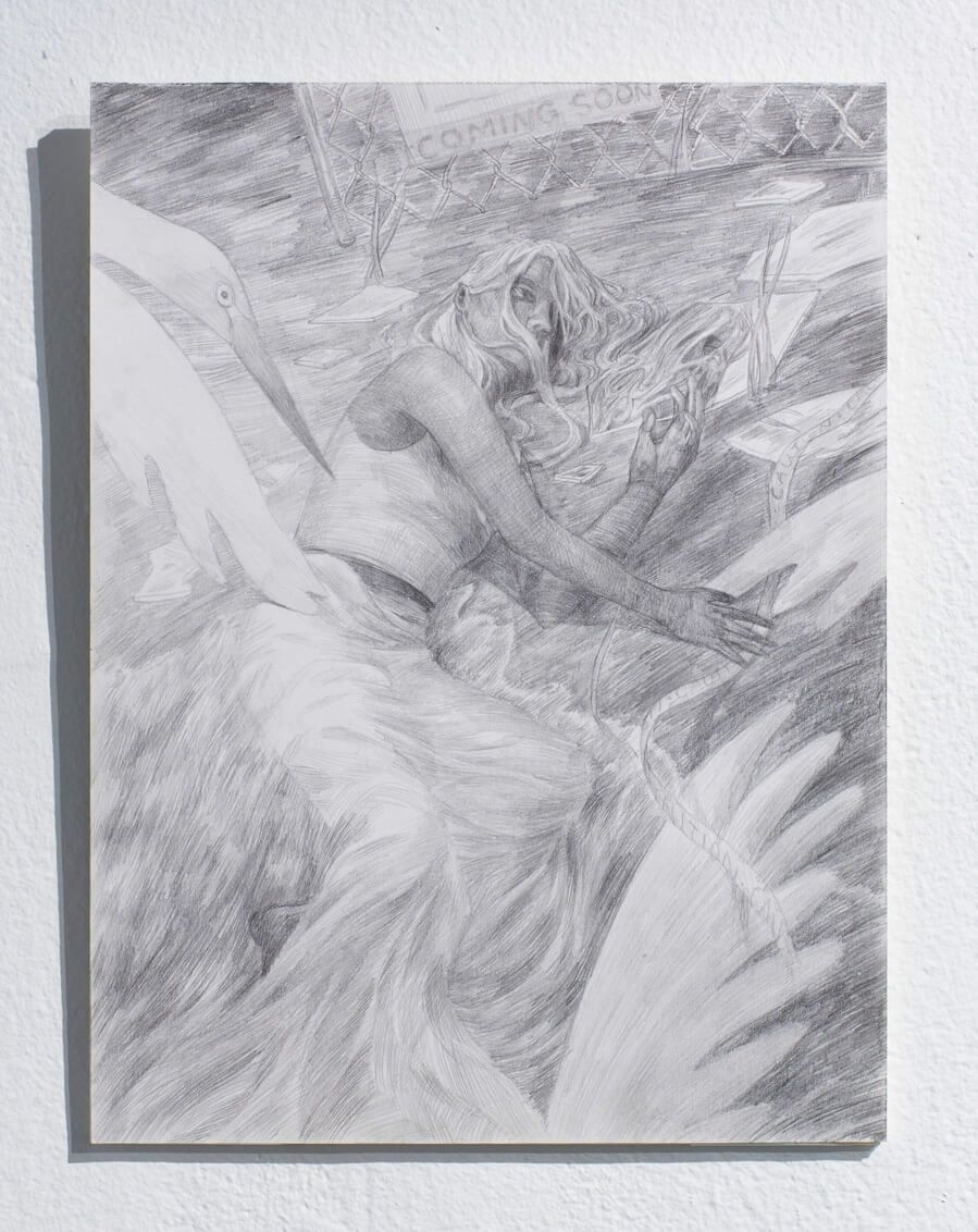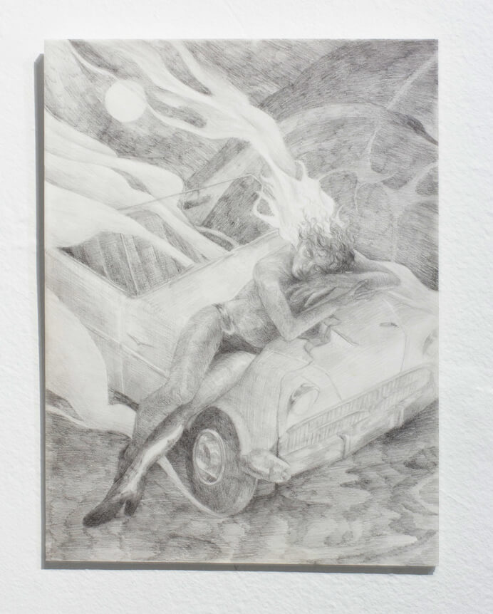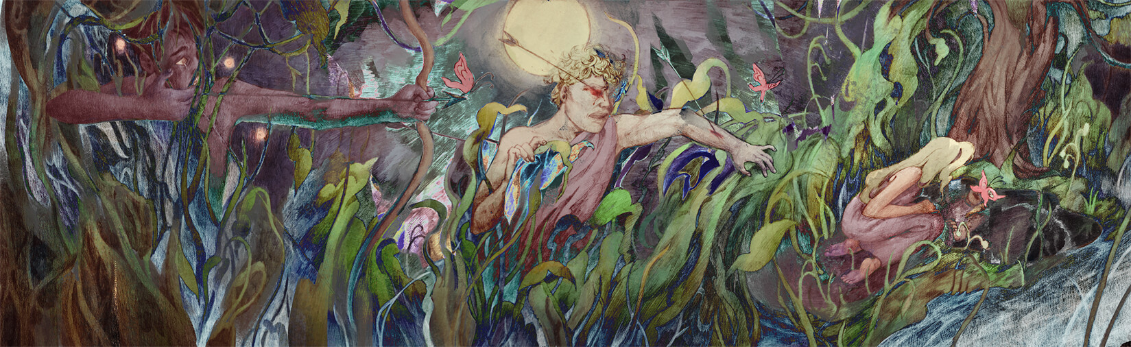 Artist Statement:Slow Burn upturns the notion of love as safe haven by illuminating the volatility and destructive power of intimacy in unsettling mythological tableaux.