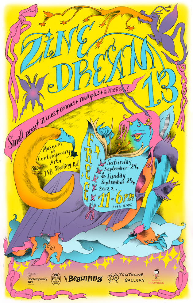 Designed in September 2022 for Zine Dream's annual zine festival, made for 11x17 risograph format (printed by Colour Code).