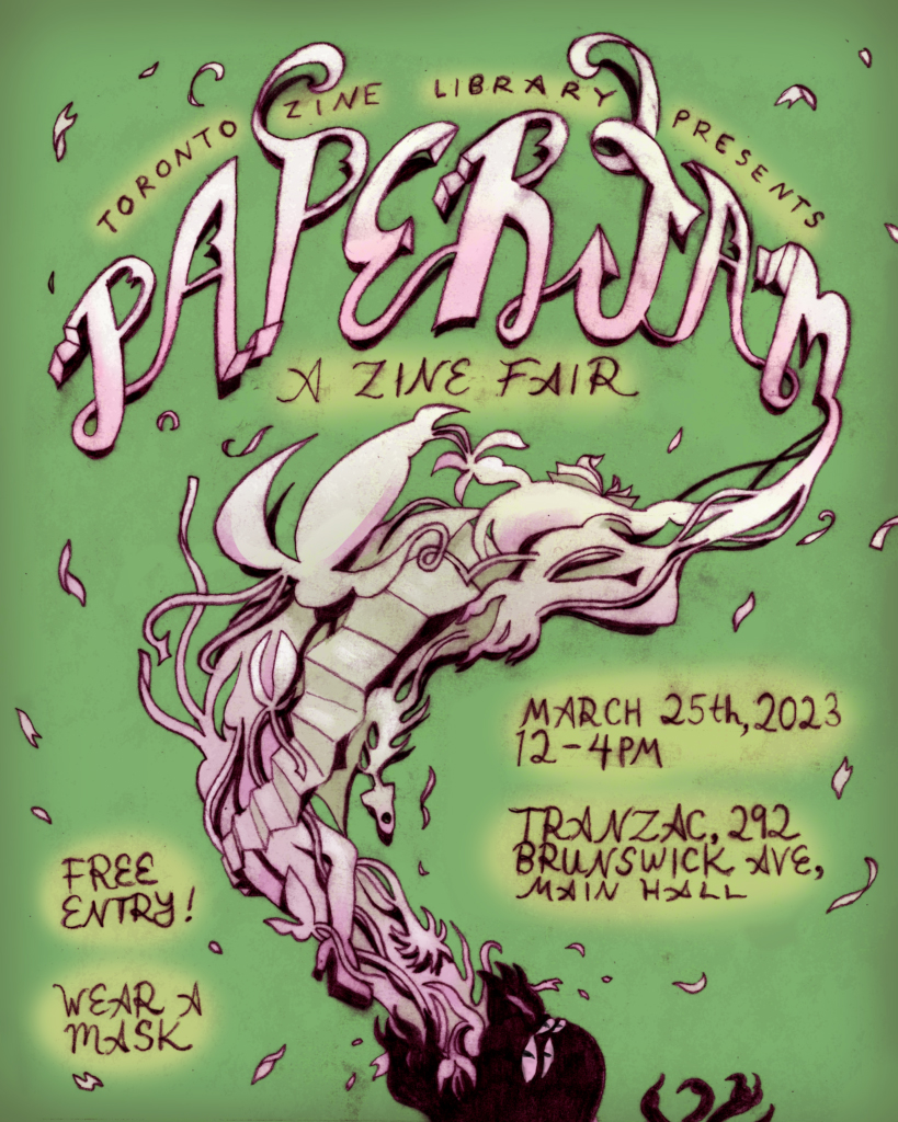 Poster designed in March 2023 for Toronto Zine Library's annual zine festival, made for Instagram vertical format.